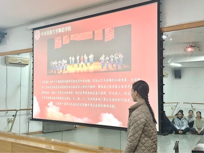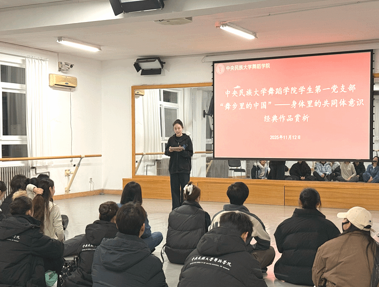 11月12日,舞蹈学院“铸牢魂·深植情·勇担当”思政领学系列活动之“舞步里的中国——身体里的共同体意识”经典作品赏析在18号楼教室顺利举行。本次活动由学生第一党支部思政领学员策划组织,学院党委书记王淼出席指导,学生党员、发展对象、入党积极分子代表共同参与。活动由思政领学员何雨涵主持。